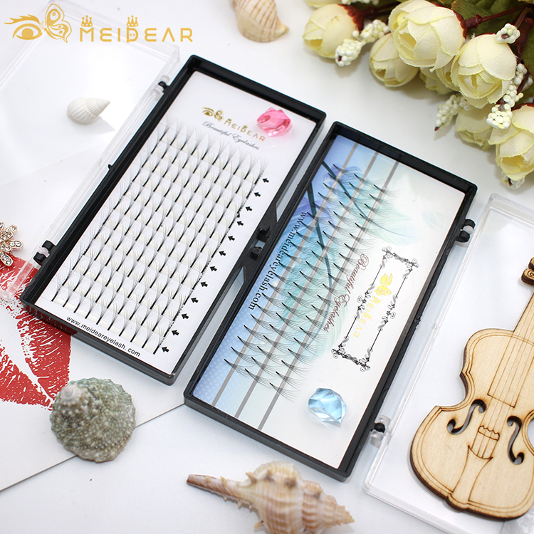 Curl J B C CC D thickness 0.05, 0.10 ,0.15mm with own brand volume eyelash extension.Meidear eyelash is a professional eyelash wholesale and have more than 20 years experience for premade fans volume eyelash extension production, we supply 2D,3D,4D,5D,6D,7D,8D,9D,10D,20D with curl I J B C D CC,thickness 0.05,0.10,0.15mm with own brand. Our glamorous premade fans volume eyelash extension will give customers a more soft,feathery, full and natural looking voliminous sets of eyelashes.It ensures the safety and quality of volume eyelash extension band which you are using on your customers.Most important, Meidear eyelash was proud of coming out with the most popular and high quality pre-fanned volume eyelash extension products for our customers. You are our priority and we can do everything for our customers to make job more easier.Curl J B C CC D thickness 0.05, 0.10 ,0.15mm with own brand volume eyelash extension