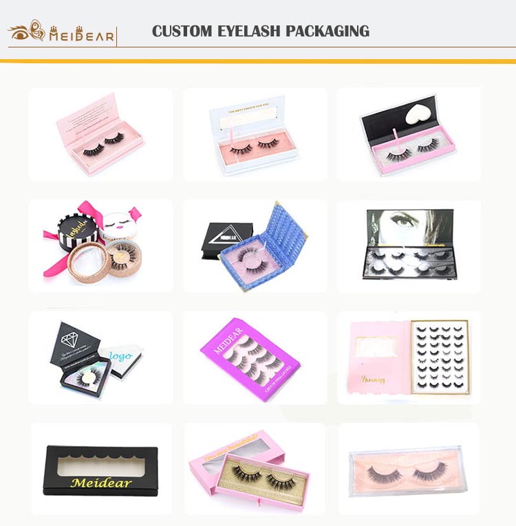 Custom lashes packaging box with private label false eyelash.Meidear 3D faux mink eyelashes are super lightweight and fluffy, they are double layered and have dramatic 3D effect.The eyelash band were made of soft cotton,comfortable. Our eyelashes have perfect curl just like your own eyelid shape.All of eyelashes are 100% vegan friend and can be reused up to 25 times with good care.Meidear 3D faux mink eyelashes are made with best quality PBT synthetic fibers,feel like real mink fur ,100% handmade,more fluffy, glamorous and dramatic.These luxury 3D faux mink eyelashes are softest eyelashes that you will ever feel.