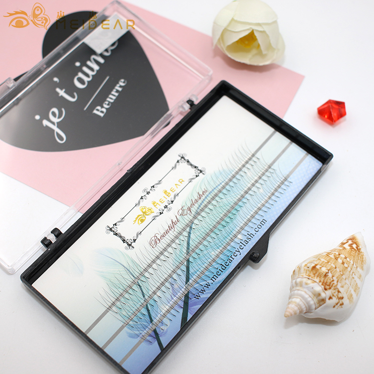 Own brand name design for flare clusters volume eyelash extensions from factory in china.Meidear eyelash is a professional eyelash distributor and have more than 20 years experience for soft flare clusters volume eyelash extension production, we supply 2D, 3D , 4D ,5D, 6D,7D,8D, 9D, 10D,20D with curl I J B C D CC,all of our premade fans volume eyelash extension are 100% handmade,we have own factory in china .Our glamorous flare clusters volume eyelash extension will give customers a more soft,feathery, full and natural looking of eyelashes.We can also supply own brand name design for customers. Meidear eyelash extension clusters will create a luxuriously full and perfect look, it will looks like you are blessed with amazing eyelashes. Meidear flare clusters volume eyelash extension will give customers which they always wanted !Own brand name design for flare clusters volume eyelash extensions from factory in china