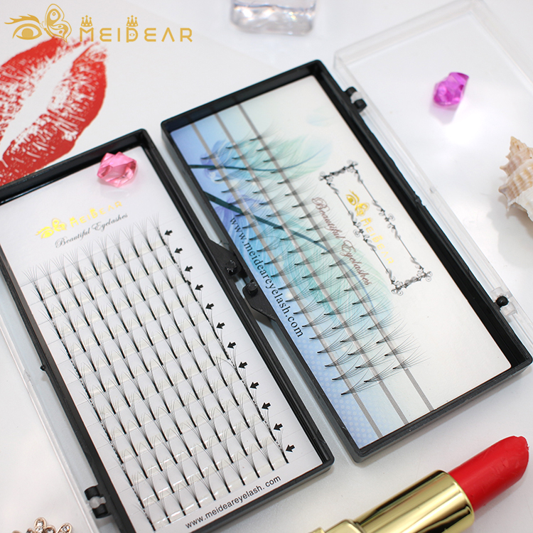 Top quality hot sale pre-fanned volume eyelash extension with brand name design.Meidear eyelash have more than 20 years experience for pre-fanned volume eyelash extension production, we supply 2D, 3D , 4D ,5D, 6D,7D,8D, 9D, 10D,20D with curl I J B C D CC,all of our pre-fanned volume eyelash extension are 100% handmade,we have own factory and all of our products are top quality and hot sale.Our premade fans volume eyelash extension will give customers a more soft,feathery, full and natural looking voliminous sets of eyelashes.Meidear volume eyelashes are feathery-soft and lightweight.We have design own brand name for our customers from all over the world.Meidear volume eyelashes are feathery-soft and lightweight.Our individual flare clusters can not destroy your own natural eyelshes. Premade fan eyelash extensions are more luxury, soft, strong and light than classic eyelash extensions.When customers wear them, they will feel more comfortable and lightweight.